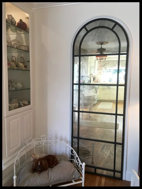 I placed a pair of these large mirrors on the floor across from my large kitchen window. Not only do they reflect more light but they subtly make the space appear larger while bringing in the charm of the garden.